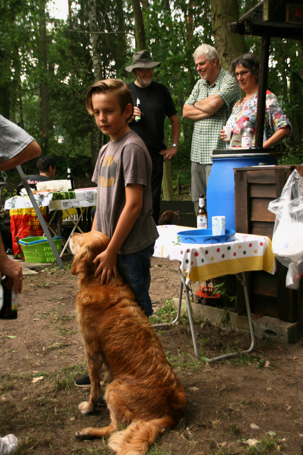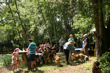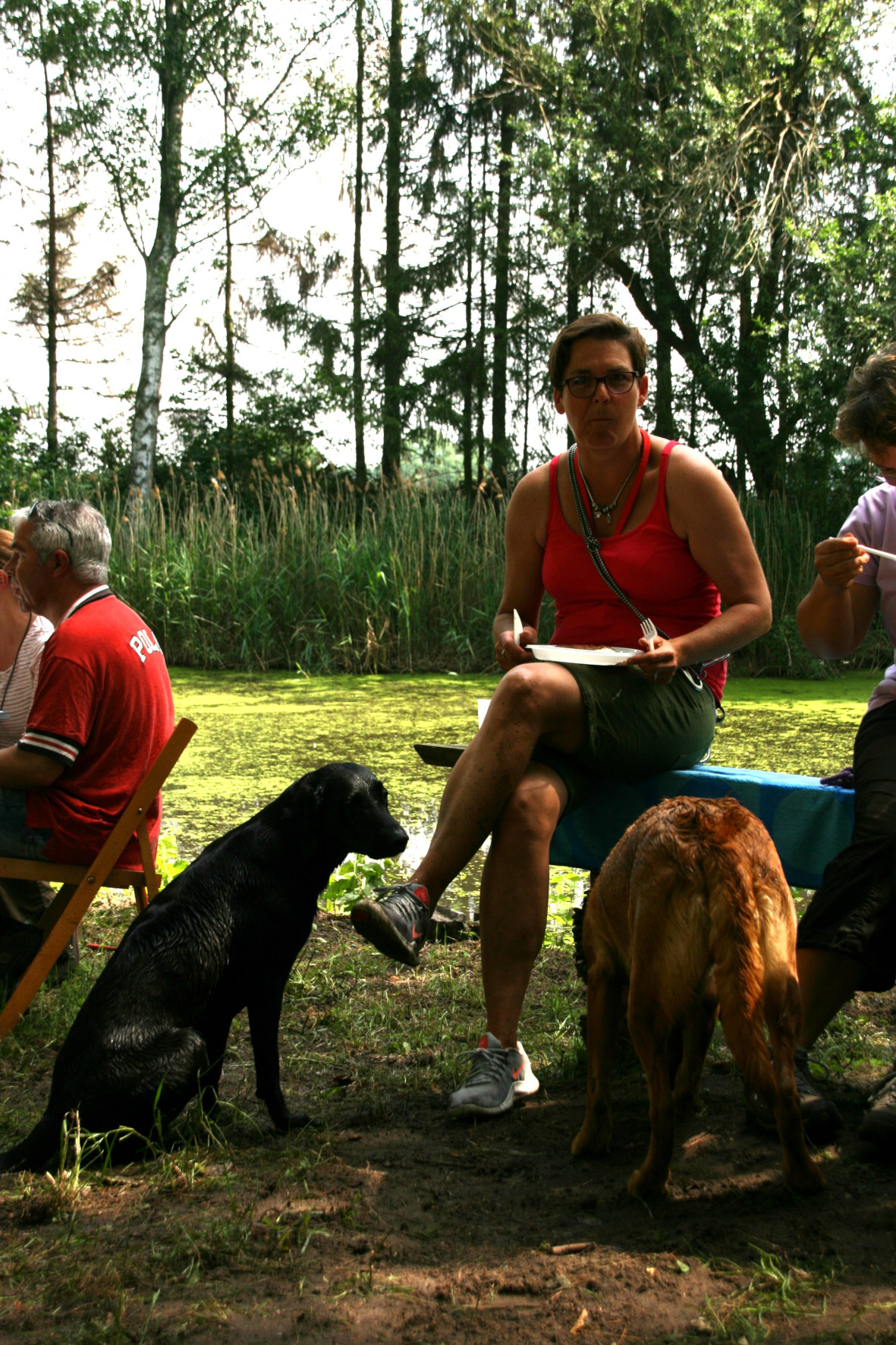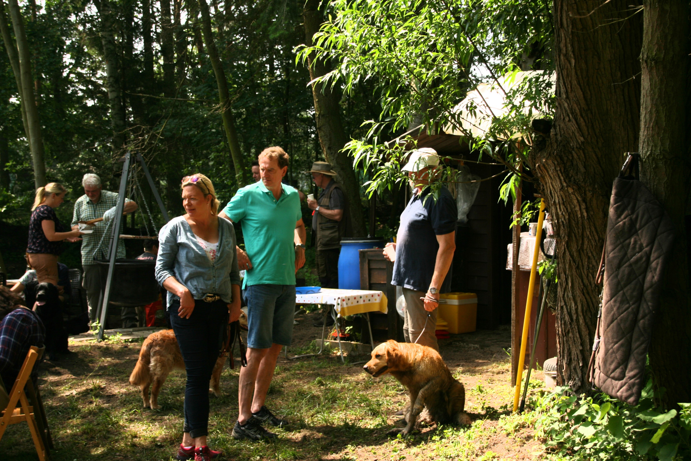 So haben wir es uns bei der Einweihung auch gut gehen lassen: Gegrilltes und Salate, kühle Getränke und Kuchen, schöne Gespräche und toller Gesang von Raimund, begleitet auf seiner Gitarre, spaßige Aufgaben mit Wasserapport für die Hunde! Nun kann das Training am Wasser – unabhängig von der Brut- und Setzzeit – beginnen!